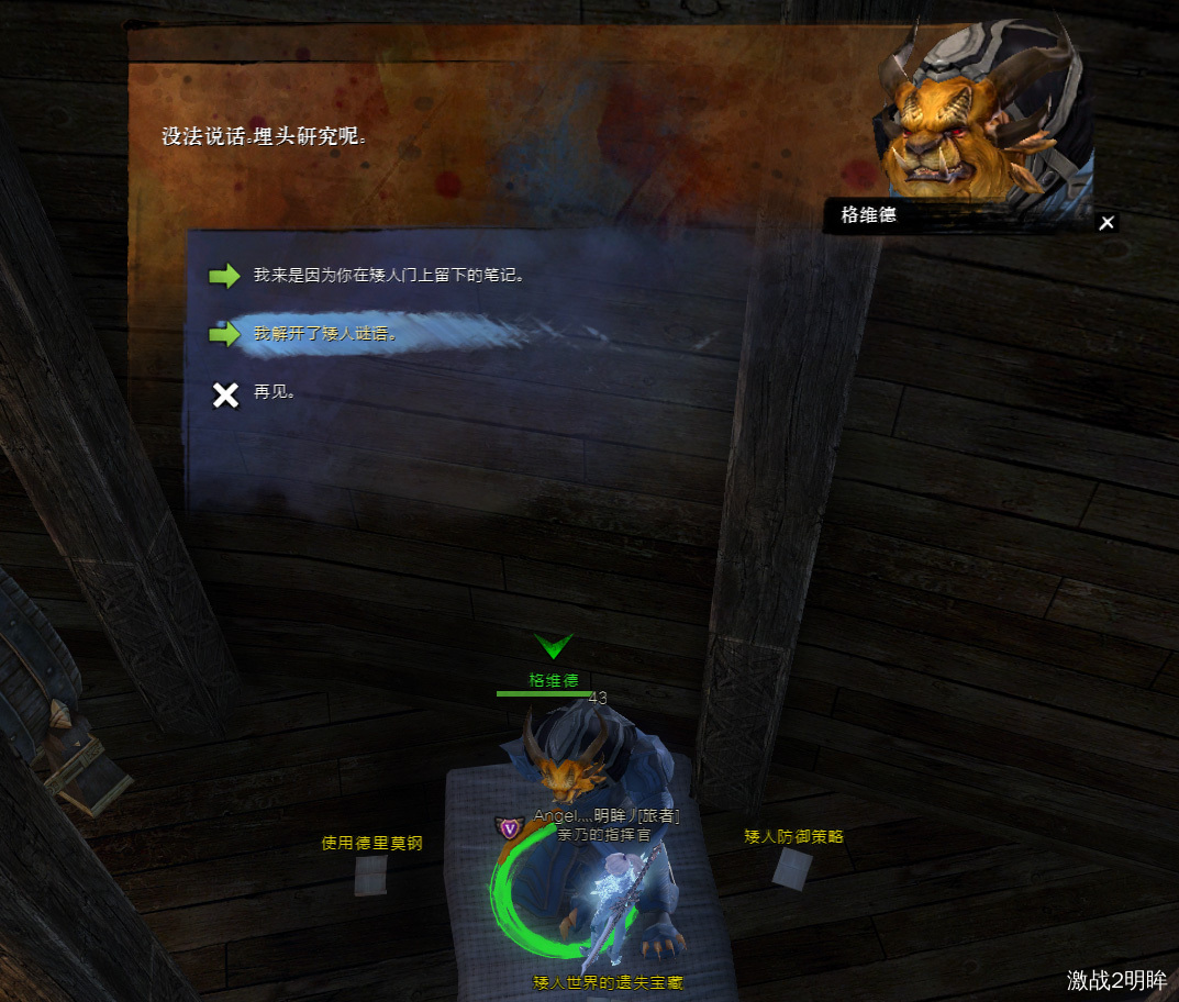 再去掘洞悬崖=特弗伦传送点=[&BGQCAAA=],和格维德对话,然后阅读地上的3本书,再和格维德对话,选择我解开了矮人谜题。