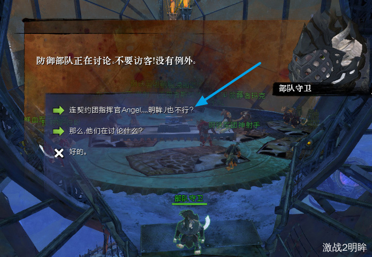 在罗克丝和里特洛克会面的副本里边,选第1个选项,要不然守卫不让你进去。