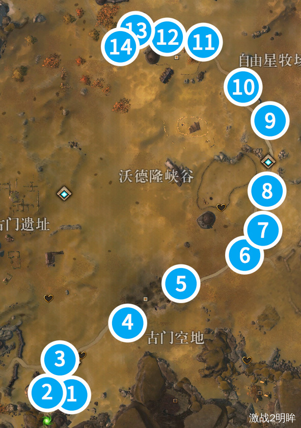 1、从底耶沙高地=诺兰传送点=[&BN4AAAA=]到底耶沙高地=波瓦林庄园=[&BBABAAA=],修复沿途的路标,点亮篝火,可以切换角色一直互动。