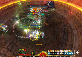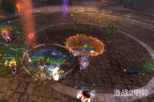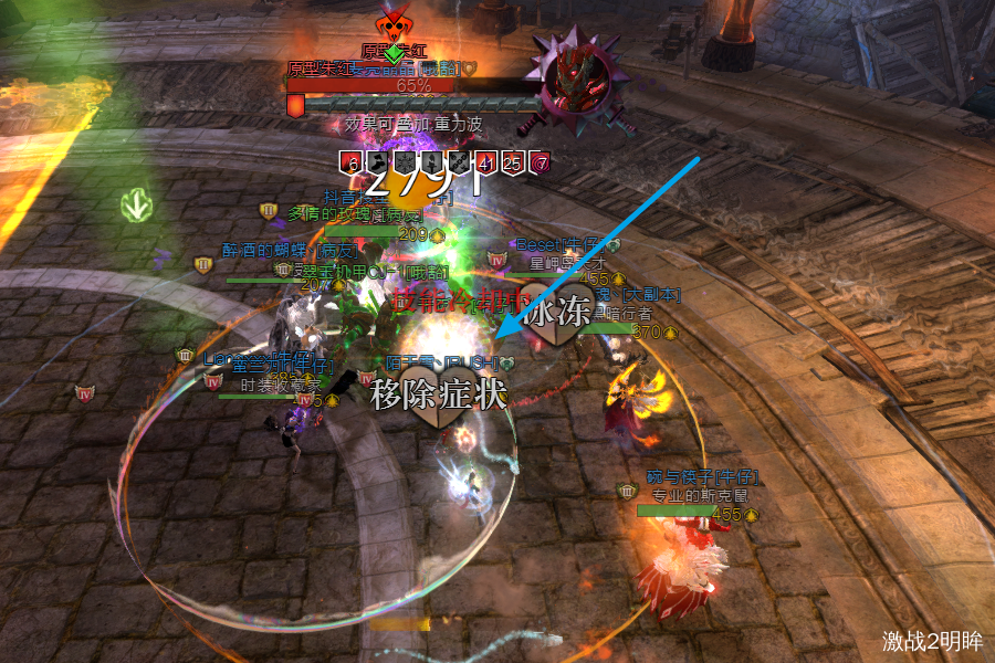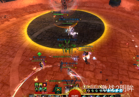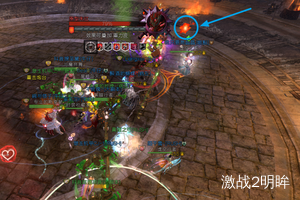 3个boss血量降低到40%时,我们需要破掉红色boss的蔑视,此时蓝色boss脚下会出现安全区域。