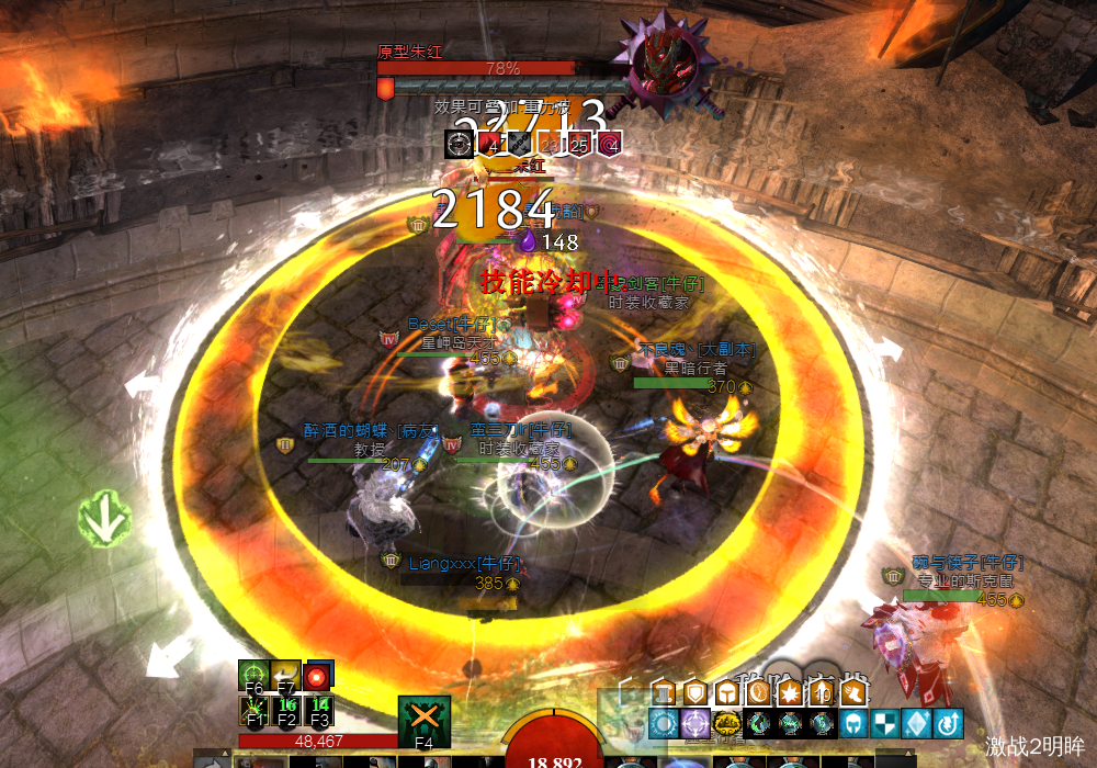 boss脚下出现同心圆技能,其中最中心还有个深红圈,看到这个技能直接转身向外跑,离中间越近伤害越高,不要被吸进中间的红圈。