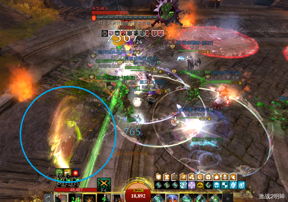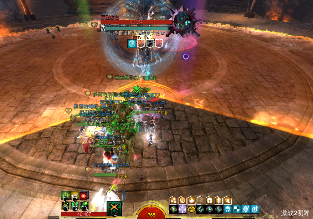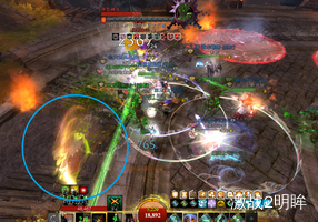 和红色boss一样,同样会选择离他最近的人成为T,不过这个boss拉不走,只能拉面向,刷新位置同样有个红圈。