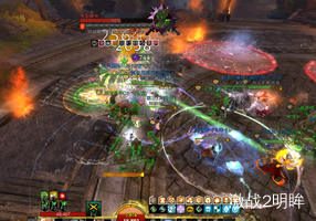 3个boss血量都降到80%时,我们需要破掉绿色boss的蔑视。此时红色boss脚下会出现安全区域。