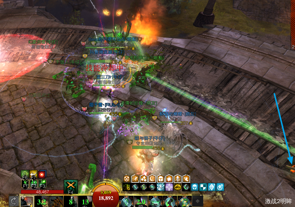 此时场地上有如下机制:蓝色的斥力圈、毒圈、红色的毒圈,绿色的吗,绿色的蔑视大招。
