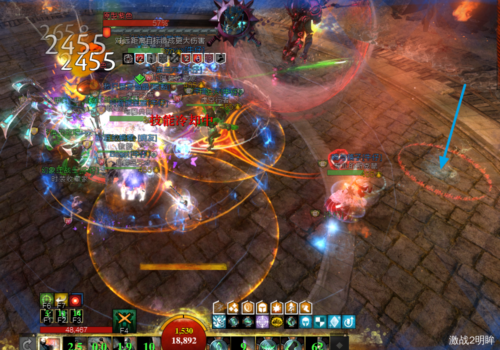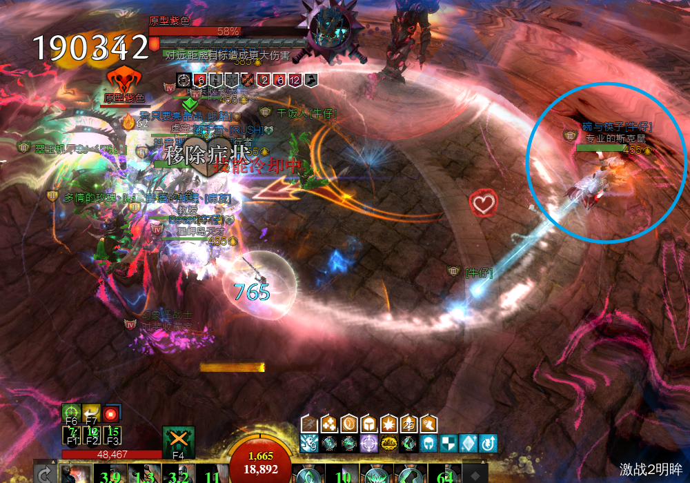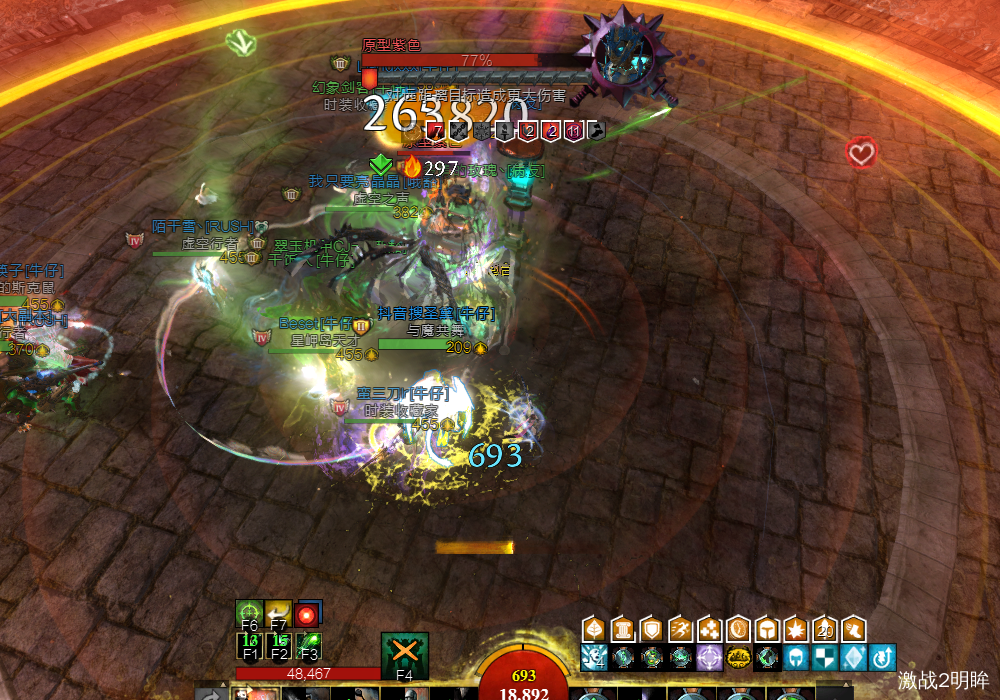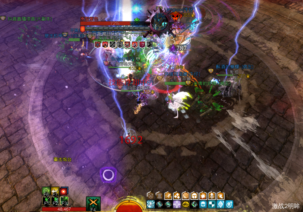 boss脚下出现同心圆技能,看到此技能,所有玩家都应该在离boss最近的地方抱团,此时也会受到雷电攻击,此技能伤害很高,离远会倒地。