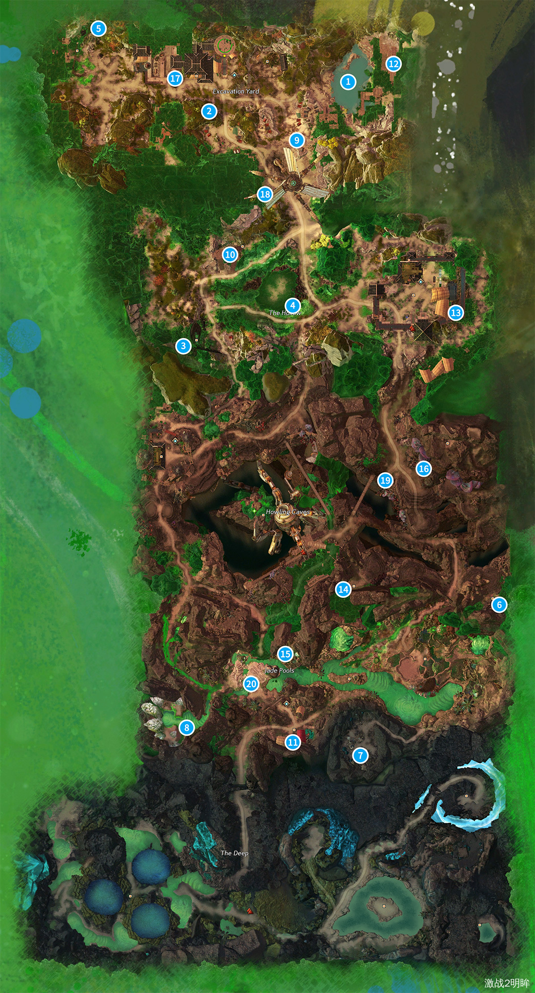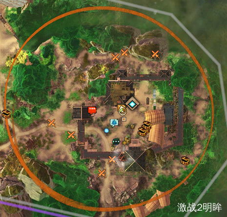 突破占领盖拉洞穴=翠玉支柱传送点=[&BKQNAAA=]、盖拉洞穴=巨兽裂隙传送点=[&BJINAAA=]两个基地之后,每个基地都有对应等级,需要你在每个基地所属的白色范围内完成各种事件来升级基地,每次升级期间至少参与一个事件,那么在基地升级时便可以获得成就。