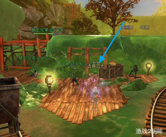 突破占领盖拉洞穴=翠玉支柱传送点=[&BKQNAAA=]、盖拉洞穴=巨兽裂隙传送点=[&BJINAAA=]之后,城里每隔一段时间会刷新事件,找头顶有标记的空战军需专员领取狙击步枪,然后去用狙击步枪击杀翠玉兄弟会狙击机甲,就是城外的黄叉。只要你不离开基地,那么你的狙击步枪就可以无限发射子弹,但是开一枪之后记得规避啊,机甲会狙你,一枪倒,然后就互狙,直到狙死对面机甲。