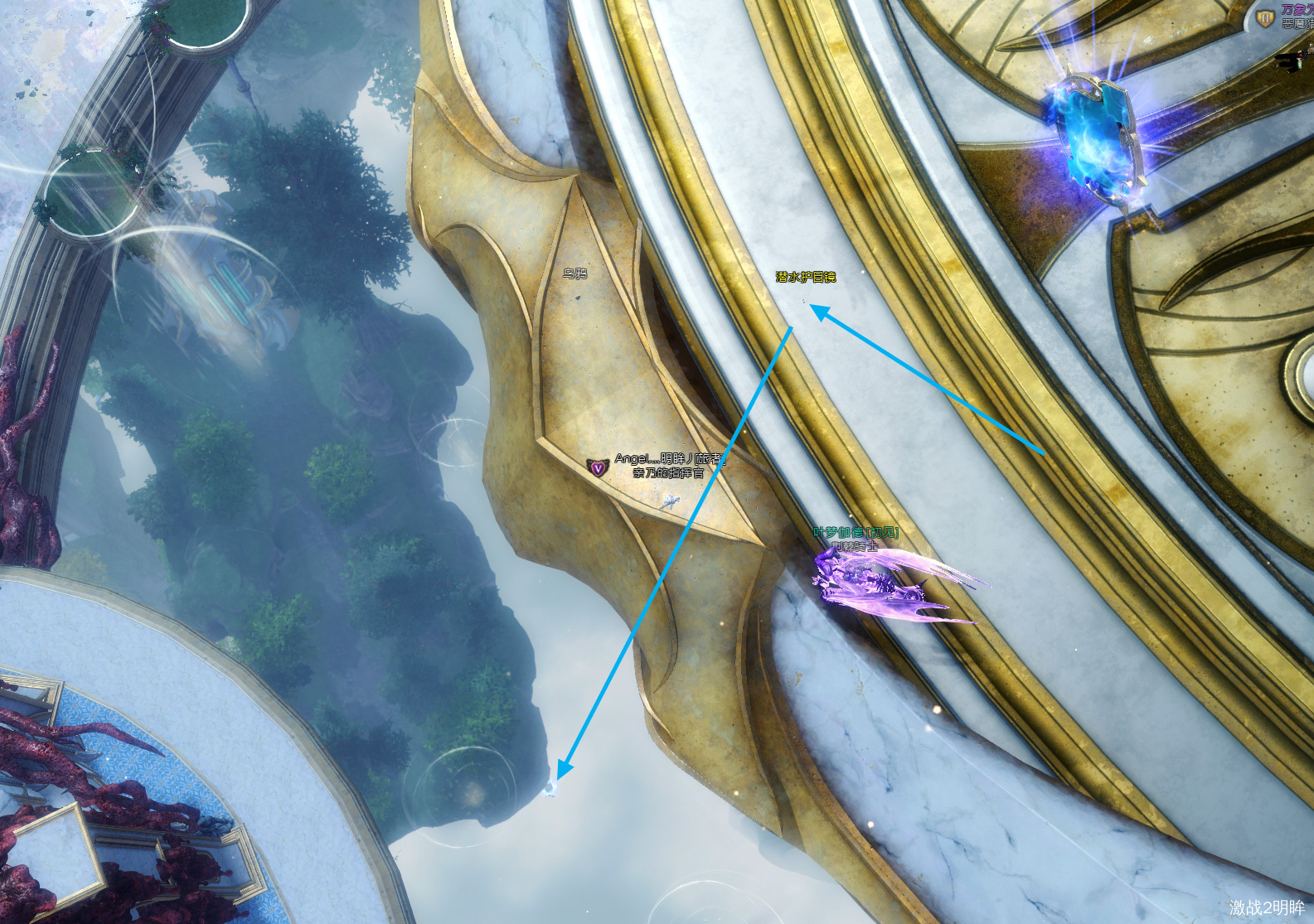 潜水护目镜之后突破结束后刷新,跳至下方的泛蓝光的水桶里边。