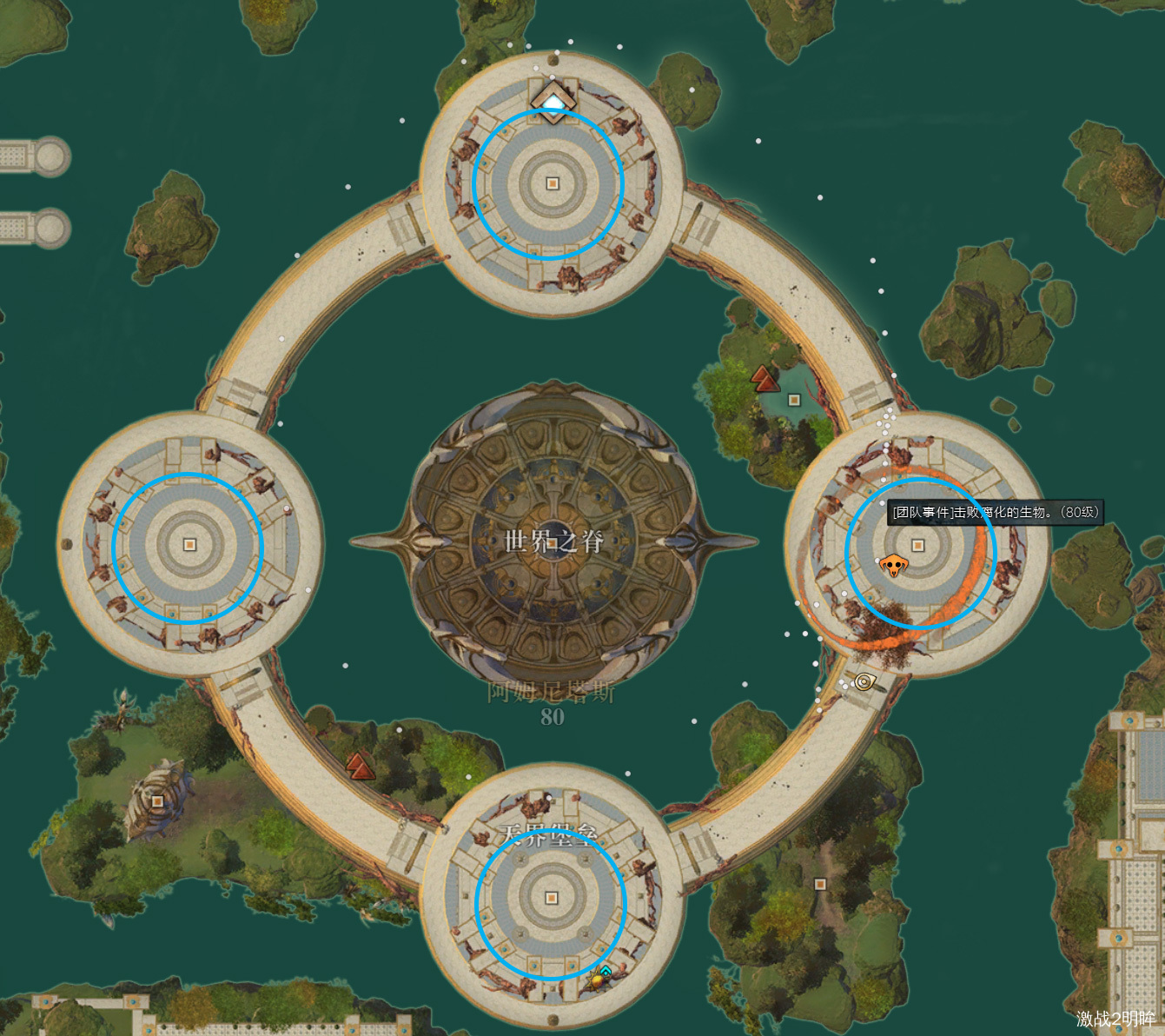 阿姆妮塔斯突破,偶数点整刷新,努里斯巨口血量50%以后,离开平台,打完三个触手之后,在阿姆尼塔斯=天文枢纽环=[&BM8NAAA=]刷新事件:帮助召唤天界守护者。