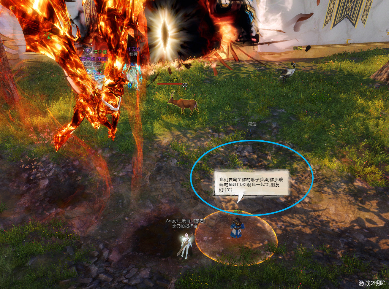 触手事件刚开始刷新的时候,一定是怪出来之前。当莱尔说:“我们要嘲笑你的麻子脸,朝你那破碎的角吐口水!跟我一起笑,朋友们!(笑)”的时候,我们在聊天框输入“/笑”并发送。