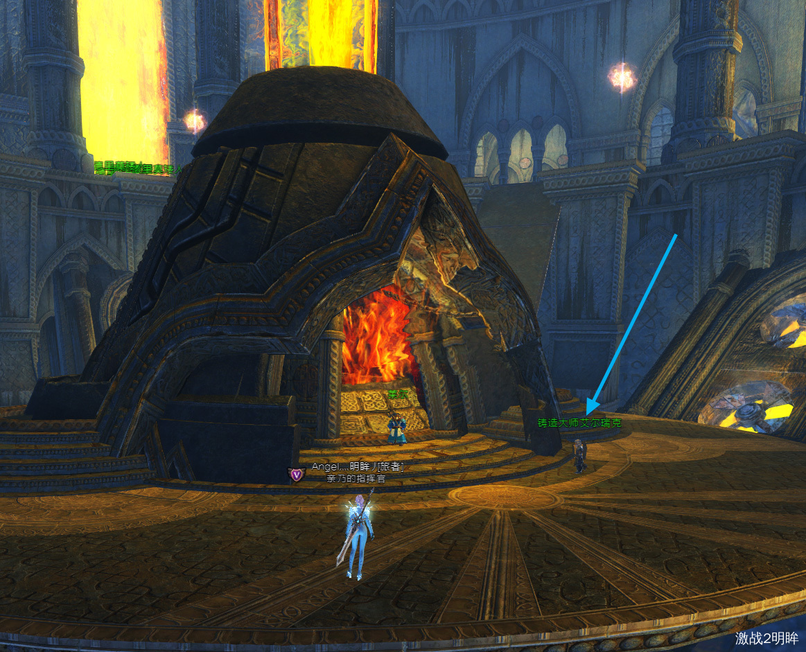 4-5、参考成就(卓克纳之光的保卫者)中的事件3,然后和npc艾尔瑞克对话,艾尔瑞克去中间熔炉了,和莱尔站在一起。