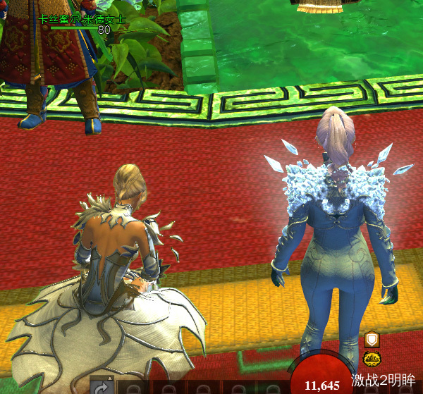 第二章中,在和凯珊女王会面时,卡丝蜜尔鞠躬和跪下时,你跟着做同样的动作。